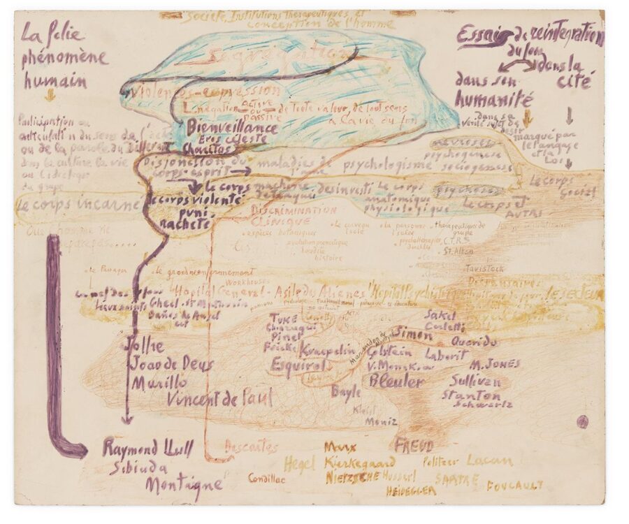 Después, en el año 1940, instalado en el hospital de Saint-Alban, recibe artistas de vanguardia como Paul Éluard y Tristan Tzara que convivieron con internos y trabajadores, cuestionando la división tradicional entre normalidad y patología, abriendo las puertas de la institución y fomentando los vínculos sociales. Como consecuencia, Tosquelles inaugura un campo fértil de actividad que dio lugar al nacimiento del art brut, pero también creó un espacio de inclusión en el que las personas “normales” y “marginales” —enfermos o exiliados, como el propio Tosquelles— encuentran un territorio común.