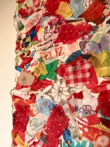 Nota sobre la obra: Collage de servilletas de papel sobre mantel y servilletas de tela con bordados. 2017
