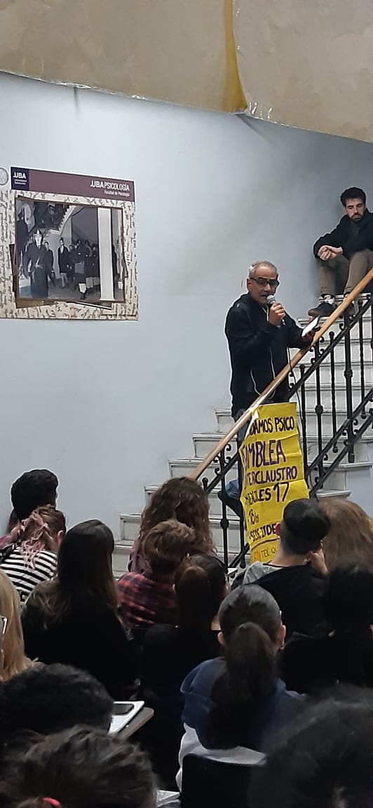 Ante la amenaza de desaparición de la educación pública universitaria argentina, debido al ataque del actual gobierno, compartimos una crónica de Valeria González, de la clase pública dictada por el profesor Marcelo Percia; organizada con agrupaciones estudiantiles, en un marco de lucha y defensa, en la Facultad de Psicología, el 10 de abril de 2024.