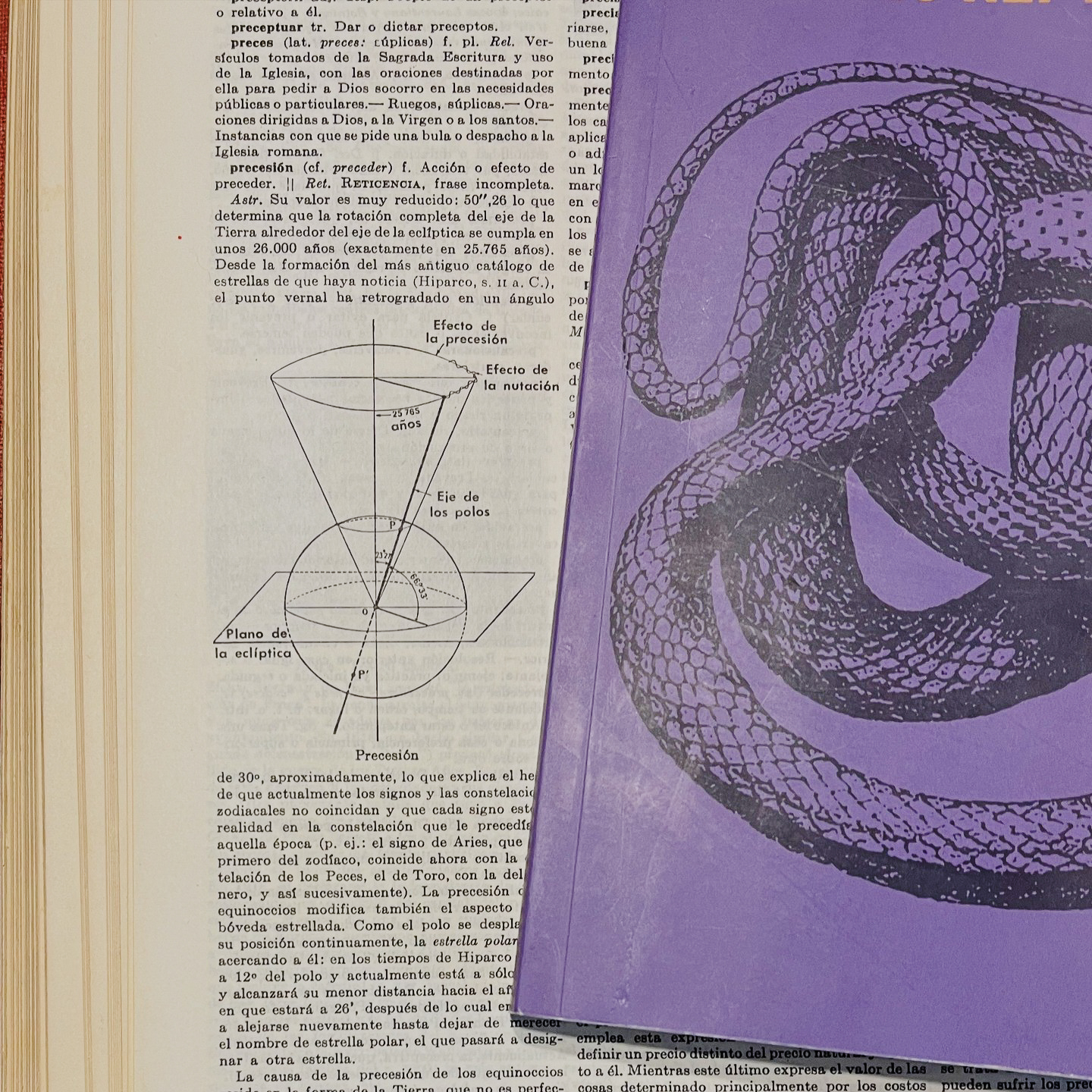 Más claro y más poético que el diccionario de la RAE me resulta el antiguo Quillet de mi mamá, que explica con un gráfico que este fenómeno de la precesión del planeta provoca, entre otras cosas que, año tras año, se corra imperceptiblemente el inicio de las estaciones y, que la ubicación actual de las constelaciones zodiacales no sea la misma que en siglos pasados. Dice que, por esta causa, un día, después del 2600, si todavía existimos para nombrar las cosas, la expresión “estrella polar” tendrá que pasar a designar otra estrella.