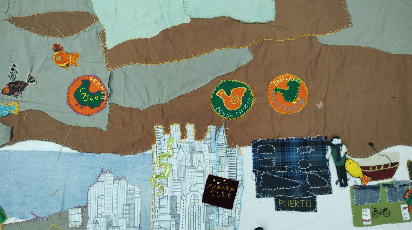“El río tiene memoria”, nos dijimos. Y entre agujas, alfileres, telas de colores y moldes, decidimos a muchas voces que íbamos a bordar cuidadosamente, en el encabezado de nuestra arpillera, el mandato surgido de esa improvisada asamblea bordadora: “No se quema la memoria del río”.