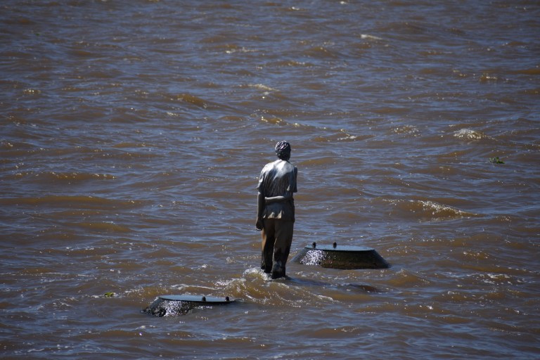 Pequeñas trampas de la memoria: recordaba la escultura más cercana a la orilla. Me obstiné en pensar que la habían alejado. Así de absurdo. O no tanto, en un contexto político como el actual, donde se pisotea la política de Derechos Humanos. Entonces decido quedarme con esa idea: también alejaron la escultura. Cambio el lente de mi cámara para acercar el retrato de Pablo Míguez a una distancia que se lleve mejor con mi recuerdo y mi sentir. Lo acerco todo lo que puedo antes de que se borronee la imagen. Está cerca. Tan cerca como lo pretendía mi recuerdo.